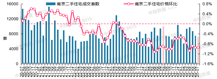 南京:量价表现均偏弱,7月二手房成交量环比小幅下降,价格环比跌幅仍较大